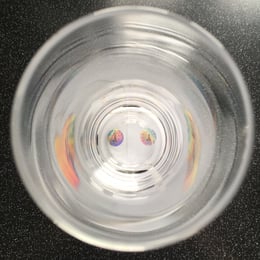 Einen handelsüblichen Glasuntersetzer für Stumpenkerzen mit einem Durchmesser von mindestens 8 cm und einer Höhe von mindestens 1 cm legst Du mit der offenen Seite nach unten über die WasserKarte.
